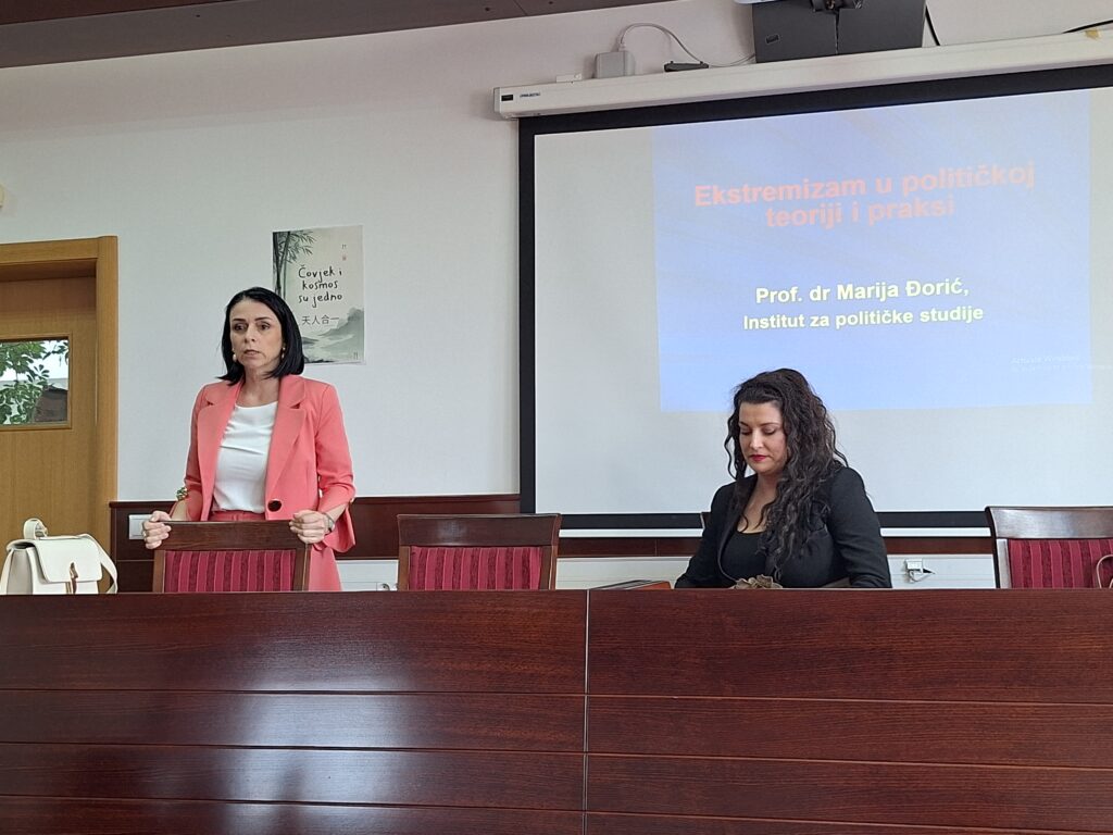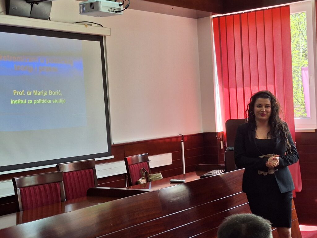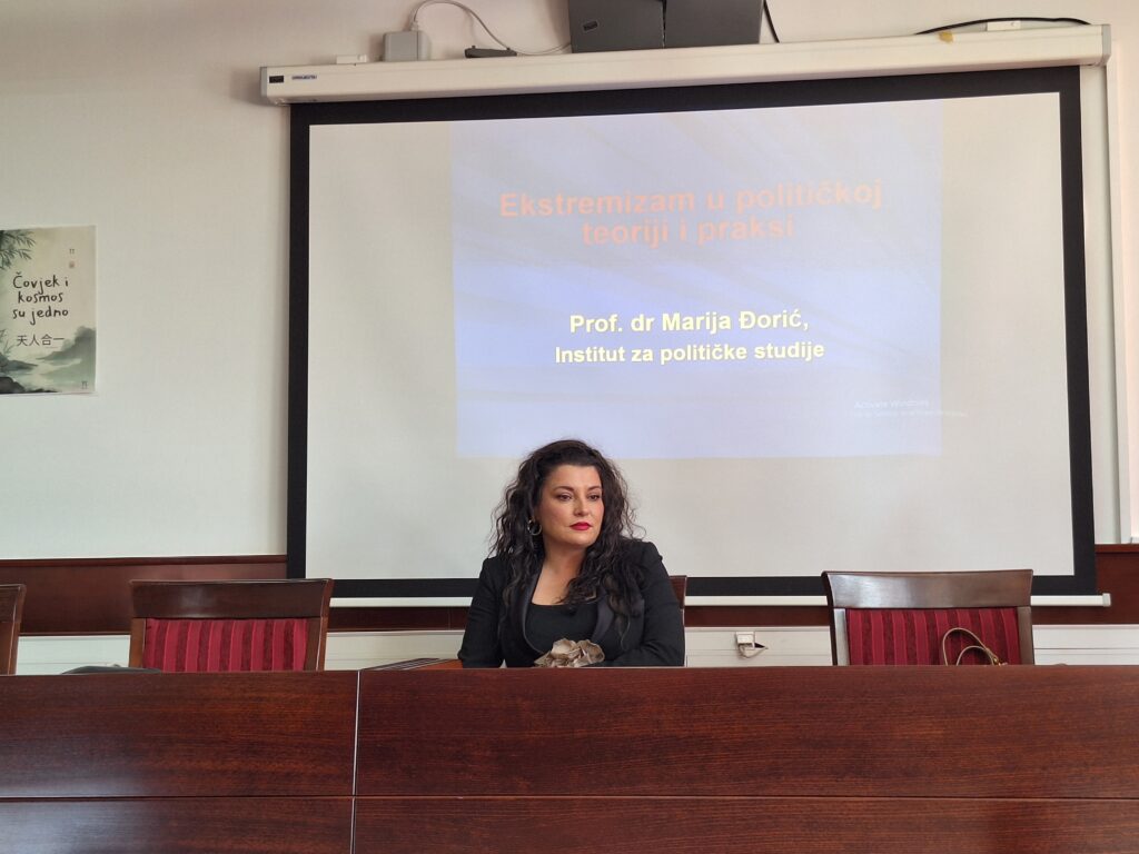 Научна савјетница Института за политичке студије у Београду, др Марија Ђорић, јуче је одржала предавање на тему „Екстремизам и радикализам у политичкој теорији и пракси“ на Факултету политичких наука.