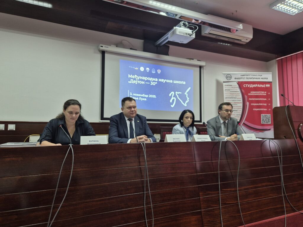 Међународна научна школа „Дејтон 30“ одржана је 3. новембра 2025. године на Факултету политичких наука Универзитета у Бањој Луци. На догађају који су заједнички организовали Фонд Горчаков, Амбасада Руске Федерације у Босни и Херцеговини и Факултет политичких наука Универзитета у у Бањој Луци презентовано је научној јавности у Републици Српској истраживање сабрано у научној монографији под називом „30 година Дејтона: Како си, Босно?“