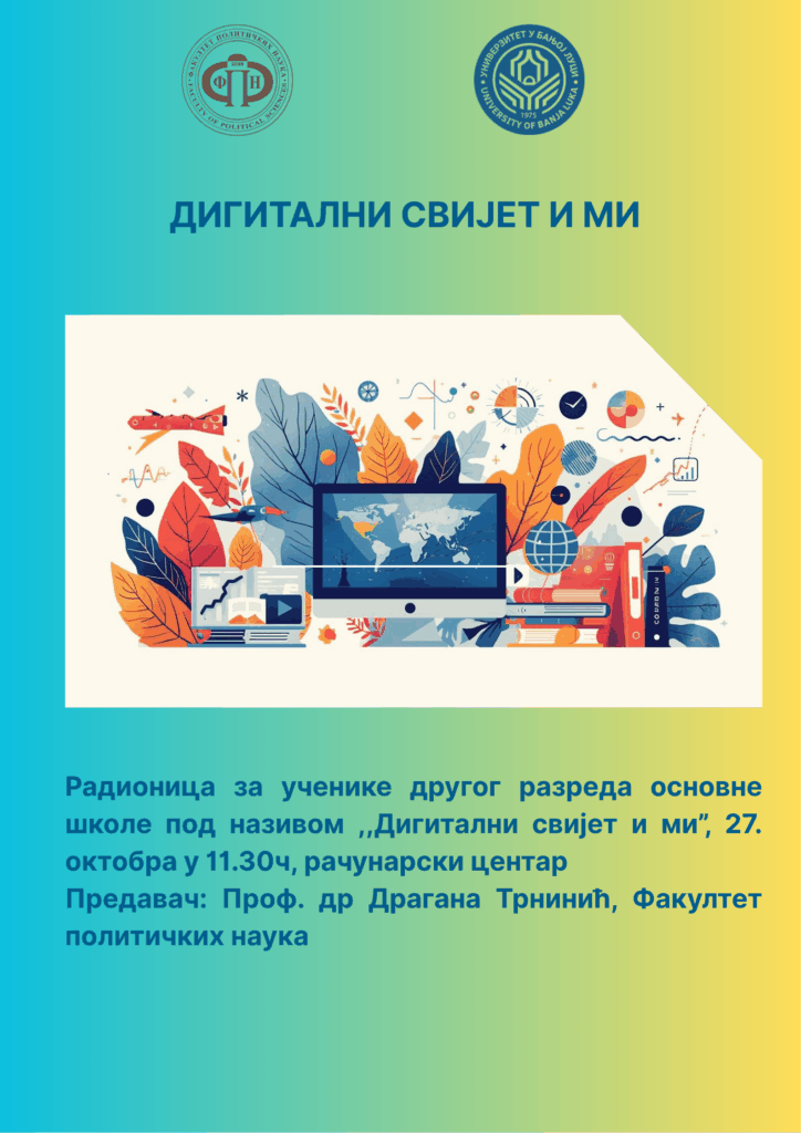 Радионицу под називом „Дигитални свијет и ми“, одржаће др Драгана Трнинић,