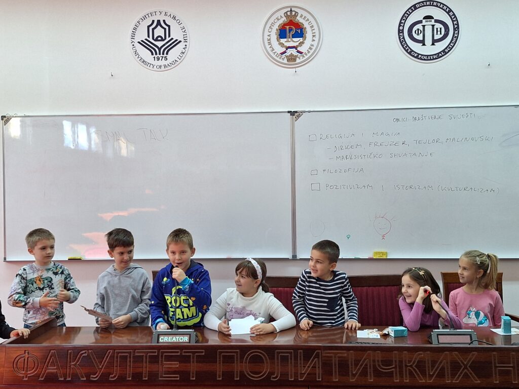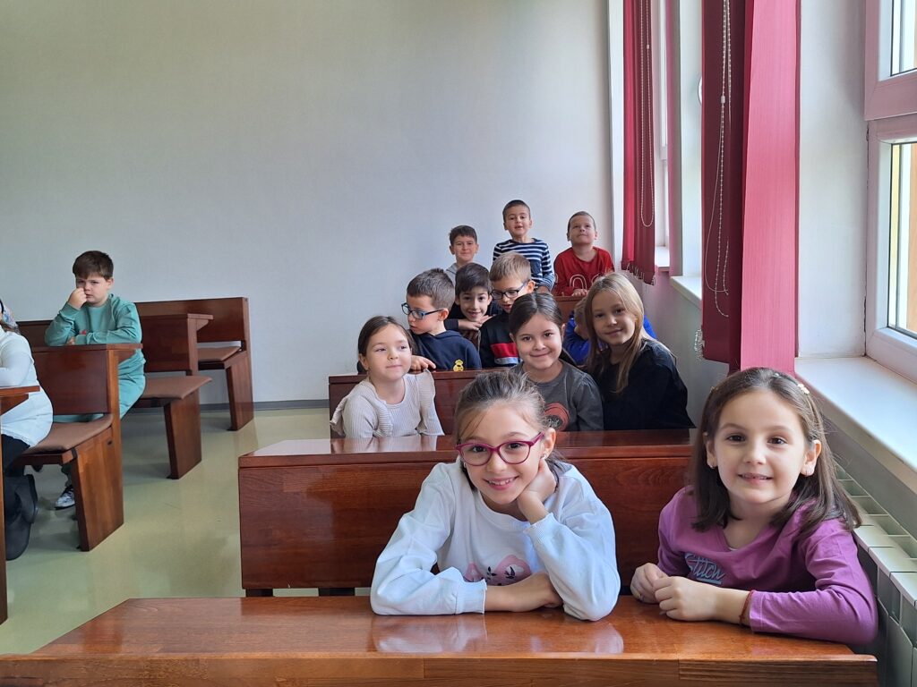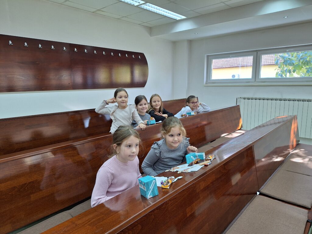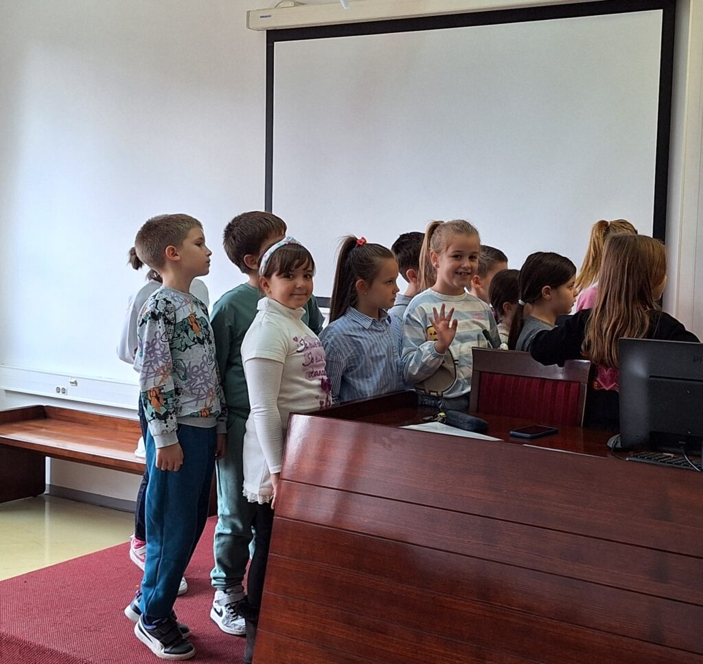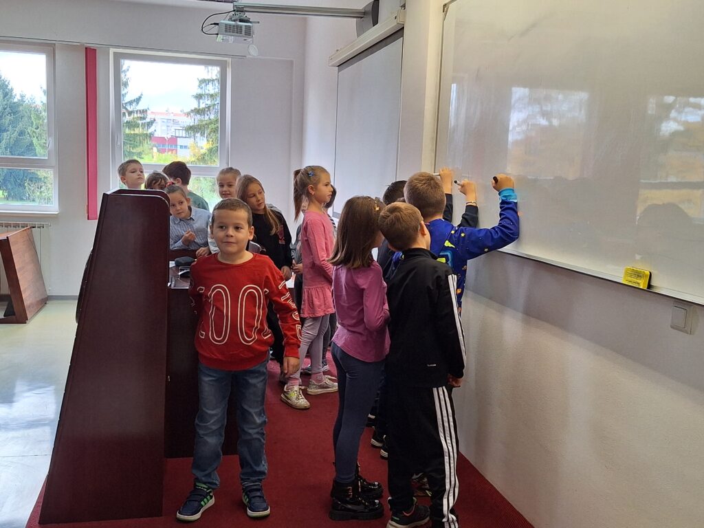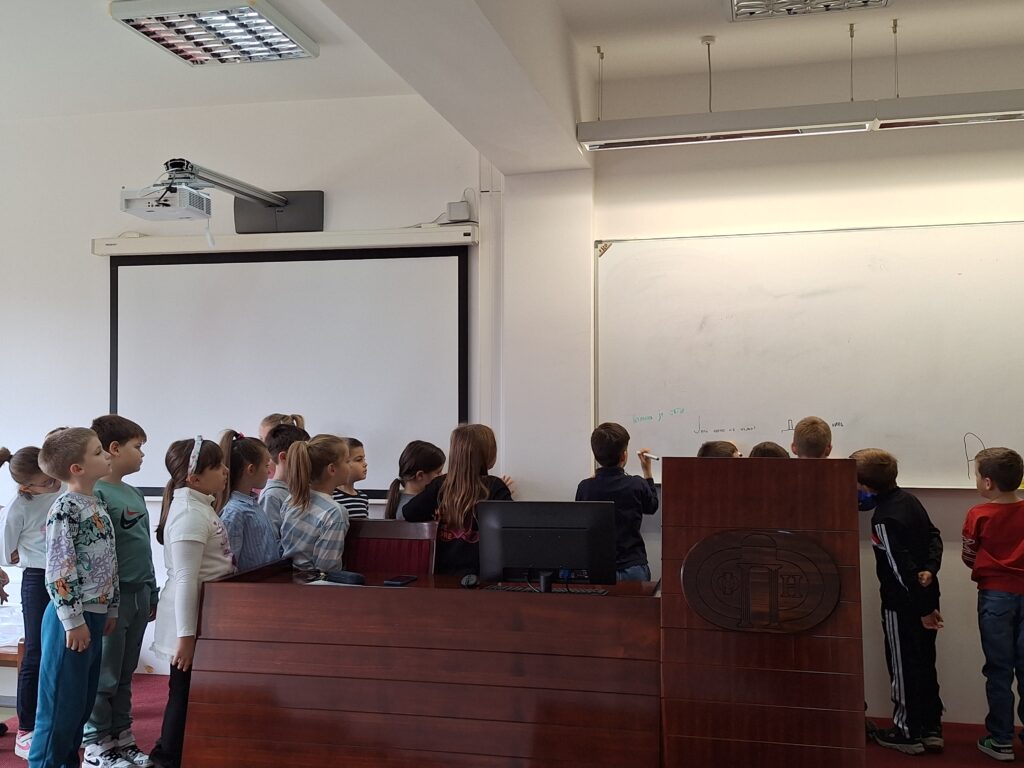 Ученици су на Факултет дошли у пратњи своје учитељице Маје Караћ, а дружење је протекло у ведрој и подстицајној атмосфери, уз много занимљивих питања и активности.